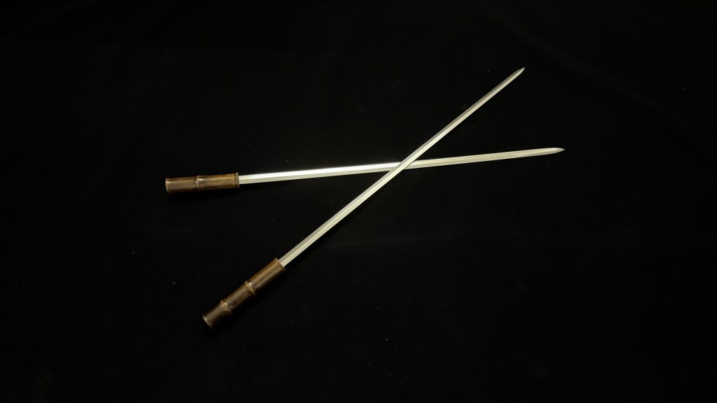 对箫款为F、G调箫配对,数量较少,可当两支萧剑用,也可以两支接一起为双头长兵。