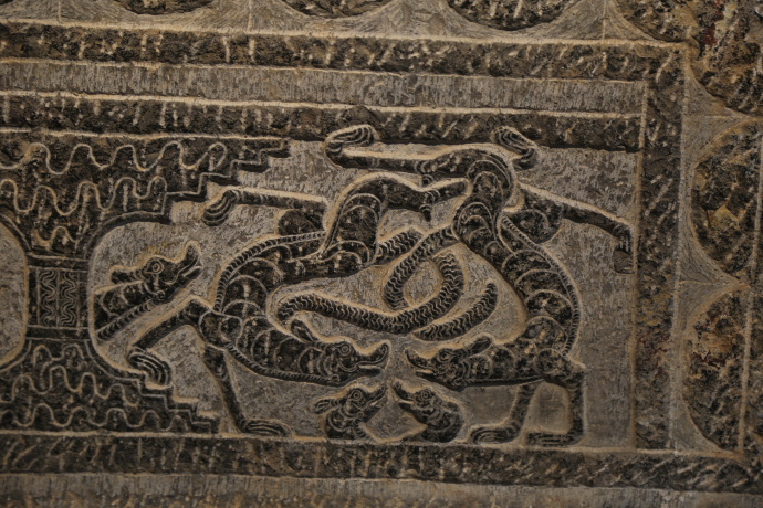 上图为汉代画像石,此类龙虎配合的画像石非常多。而在汉代,龙属身姿往往与虎相似,多是兽型,而非后世的蛇形。