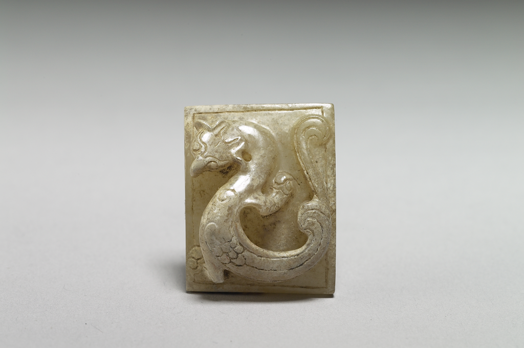 上图为一个印类器物,这个造型常出现在剑璏与虎对应的末端,这个比较清晰,可见折耳、鸟嘴、鸟羽、双爪。
