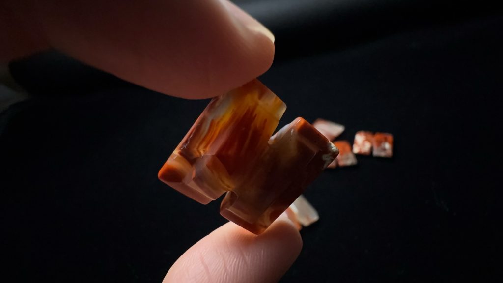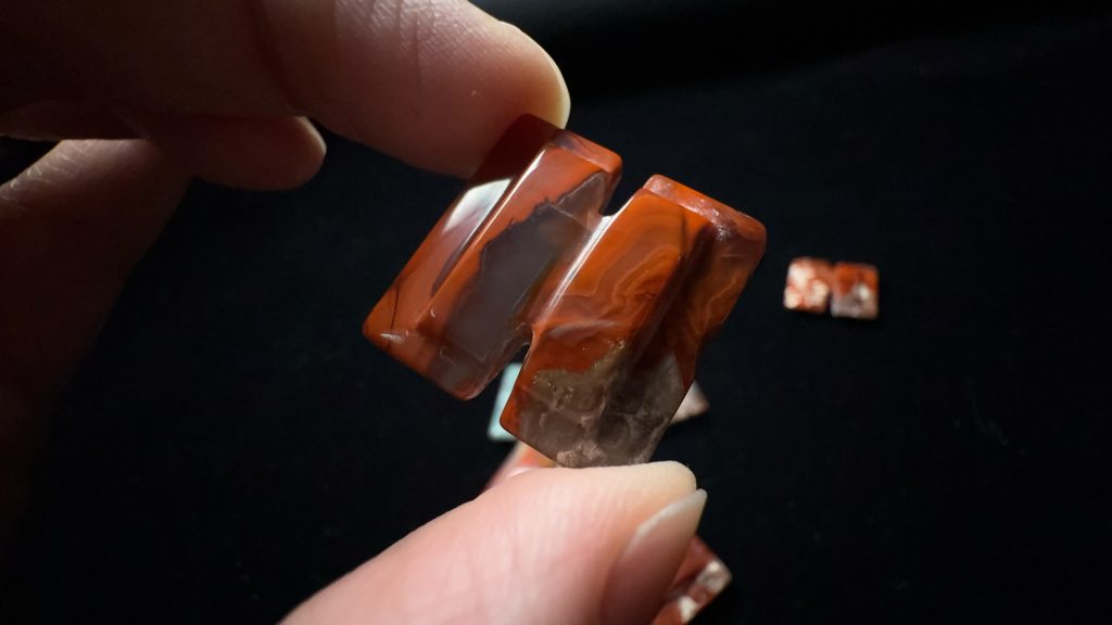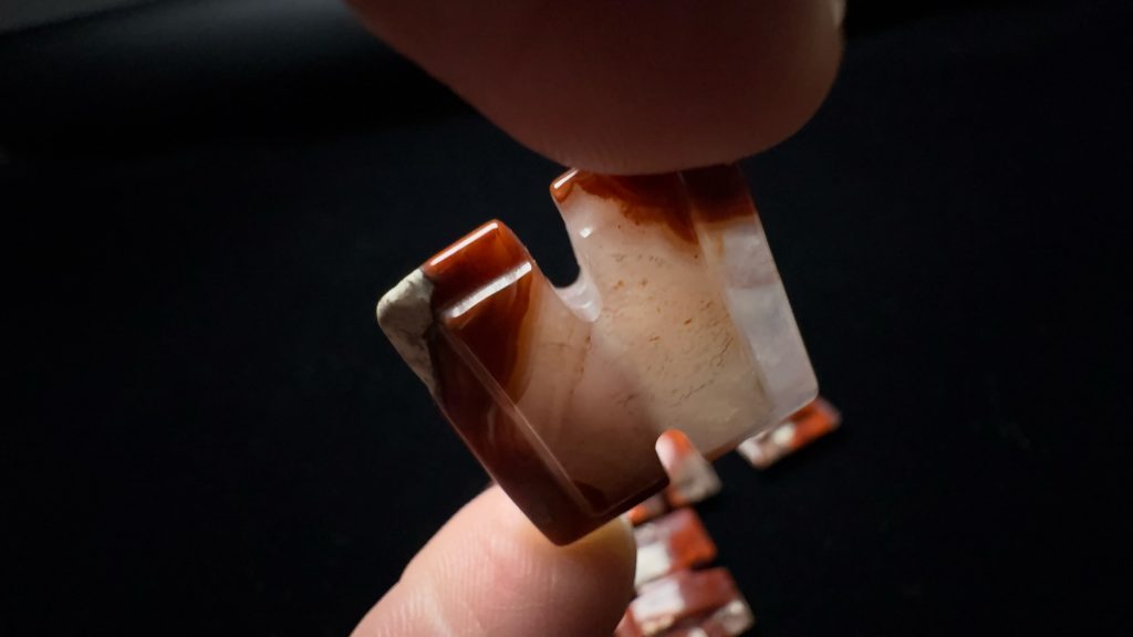 半手工制作玛瑙工字佩,多少有点各种小毛病,除描述中的问题,还可能有微裂、表面微坑不平齐等。