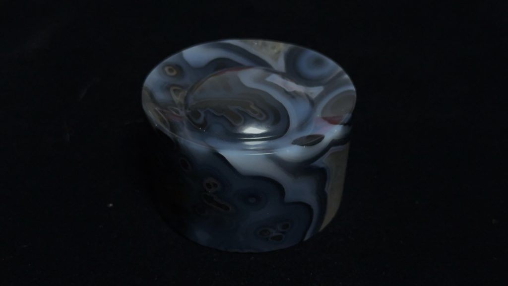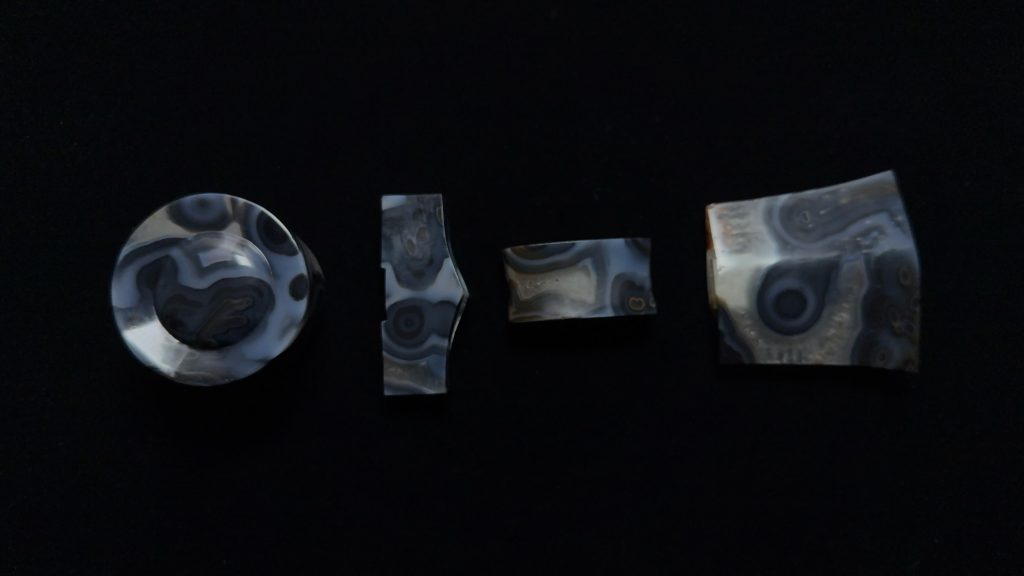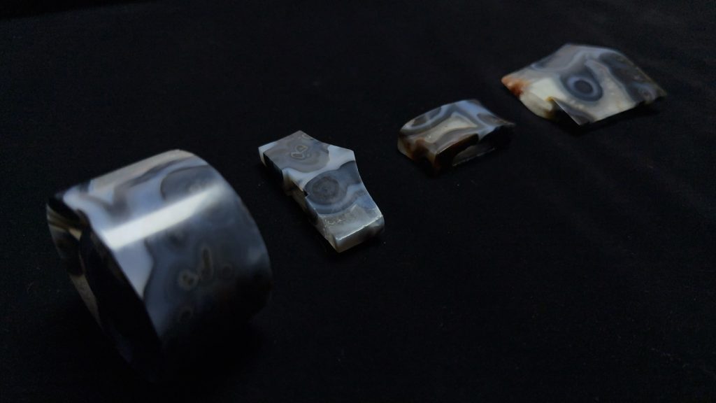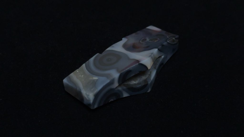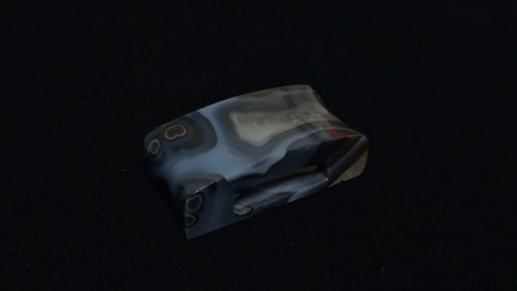 使用蓝玛瑙制作,后期处理包含仿古牛毛纹、包浆制作等。